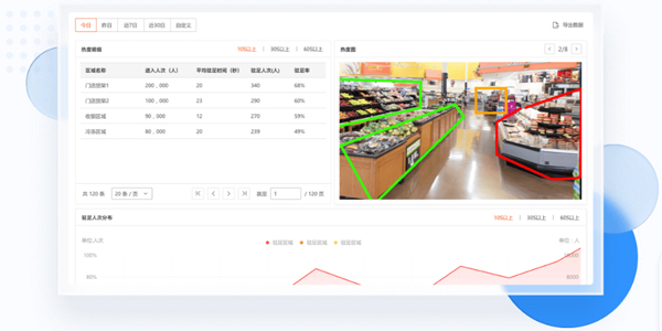 通過數(shù)據(jù)的多維統(tǒng)計、多樣展示以及不同區(qū)域的人流熱度的評估,幫助企業(yè)判斷活動效果、合理調配人手和資源