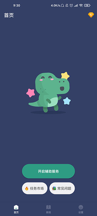 2、接著在首頁(yè)能夠看到開(kāi)啟輔助、應(yīng)用市場(chǎng)等功能;