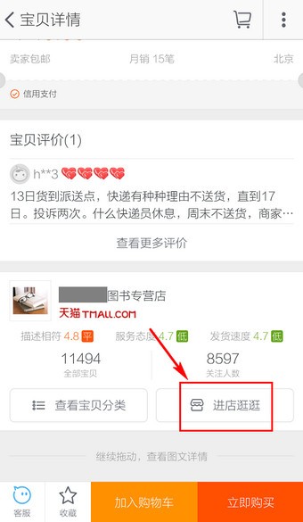 找到店鋪簡介,選擇【進(jìn)店逛逛】