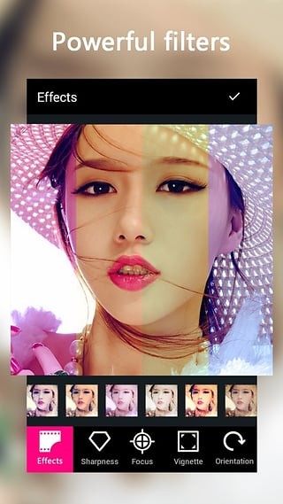 3、強(qiáng)大的編輯功能,可以幫助用戶進(jìn)行圖片裁剪、旋轉(zhuǎn)、調(diào)整亮度、對比度、清晰度等操作,還可以添加文字、圖片、圖形等元素,并且還支持各種濾鏡、效果、邊框、背景等特效,且使用起來十分簡單,成為用戶的不二選擇。