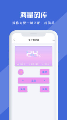 萬能遙控支持各種品牌空調(diào),內(nèi)置遙控器碼庫,無需網(wǎng)絡(luò)輕松遙控,人性化智能搜索遙控器,手機一秒變智能遙控器,一部手機遙控所有家用電器!