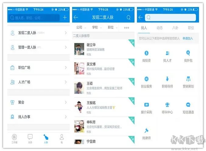 作為一款職場(chǎng)社交APP,脈脈致力于幫助職場(chǎng)人通過工作圈進(jìn)行高效工作交流,掌握行業(yè)動(dòng)態(tài),分享職場(chǎng)經(jīng)驗(yàn)和話題觀點(diǎn);通過匿名吐槽爆料獲取行業(yè)內(nèi)幕、同行薪資及公司八卦;通過找人辦事拓展人脈,實(shí)現(xiàn)跳槽、挖人、找錢、找關(guān)系等。