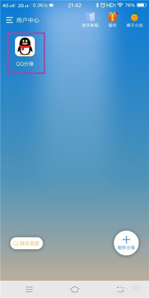 打開多開分身應(yīng)用程序,進(jìn)入到應(yīng)用程序的首頁,在頁面上可以看到已經(jīng)制作的分身(如QQ分身),