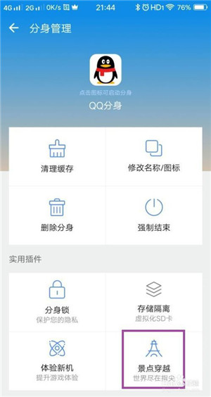 點(diǎn)擊該分身,進(jìn)入到分身管理頁面,在頁面上可見“景點(diǎn)穿越”,