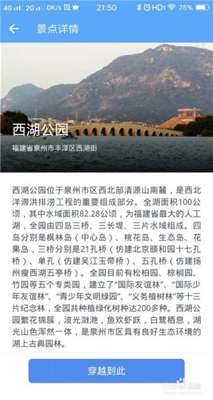 然后就是點(diǎn)擊穿越城市的景點(diǎn),進(jìn)入到景點(diǎn)詳情頁面,