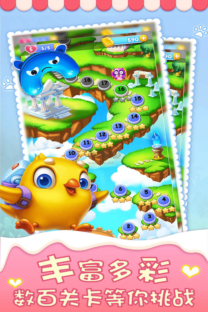 5、5種超級可愛的萌寵精靈們,陪你一起闖關(guān)啦,120道不可思議的炫目關(guān)卡。