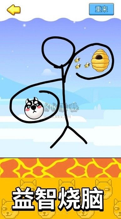 2.在游戲中玩家需要發(fā)揮出自己強(qiáng)大的想象力,通過(guò)畫(huà)線來(lái)幫助狗頭不被蜜蜂蟄到。