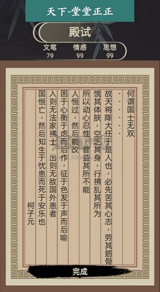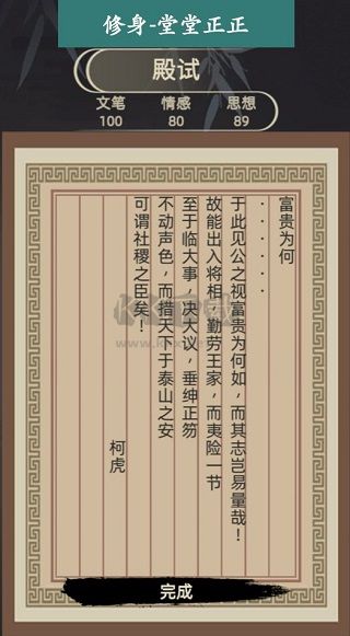 對于喜歡探索官場玩法的朋友來說,上面幾篇應該對你有所幫助。先通過寺廟、客棧玩法快速提升屬性(處世、學識、德行優(yōu)先),盡量保證會試全部答對,剩下的就是最后一環(huán):殿試。