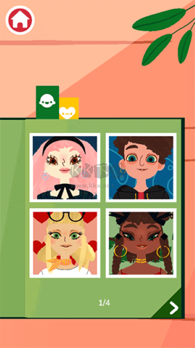 4、選擇一個背景,在您的角色擺出各種姿勢時拍出漂亮的照片!還可以將角色照片保存在相冊中,稍后回來再為其進行更多造型。