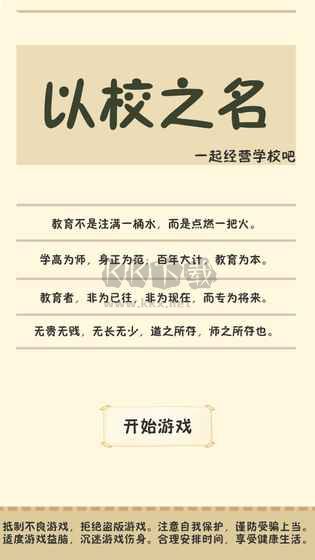 可能你玩過(guò)很多模擬游戲,但我相信模擬校長(zhǎng)的游戲你很少見(jiàn)過(guò)。真實(shí)模擬學(xué)校發(fā)展,追憶高中美好時(shí)光,融合學(xué)習(xí)、壓力、素質(zhì)等元素,最終將學(xué)生送上高考的戰(zhàn)場(chǎng)。以校之名游戲特色教育不是注滿(mǎn)一桶水,而是點(diǎn)燃一把火。學(xué)高為師,身正為范;百年大計(jì),教育為本。教育者,非為已往,非為現(xiàn)在,而專(zhuān)為將來(lái)。無(wú)貴無(wú)賤,無(wú)長(zhǎng)無(wú)少,道之所存,師之所存也。