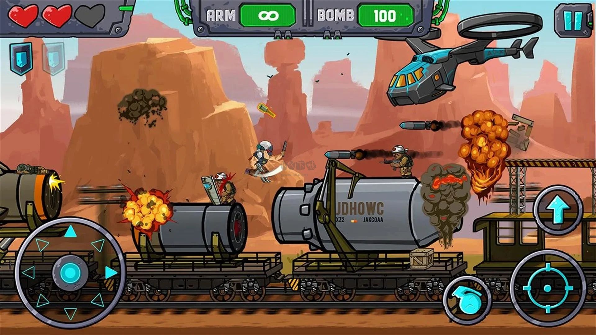 金屬射擊中文版是一款非常好玩的2D射擊冒險游戲,精致的卡通風格將為玩家?guī)沓壦斓拇驌舾?,作為一名冷酷的?zhàn)士,我們需要打入敵人的內(nèi)部,摧毀他們所有的外援和物資,最后和總部一起進攻,一舉拿下所有敵人,游戲美式動畫的風格比較重,感興趣的伙伴們速速下載體驗吧!
