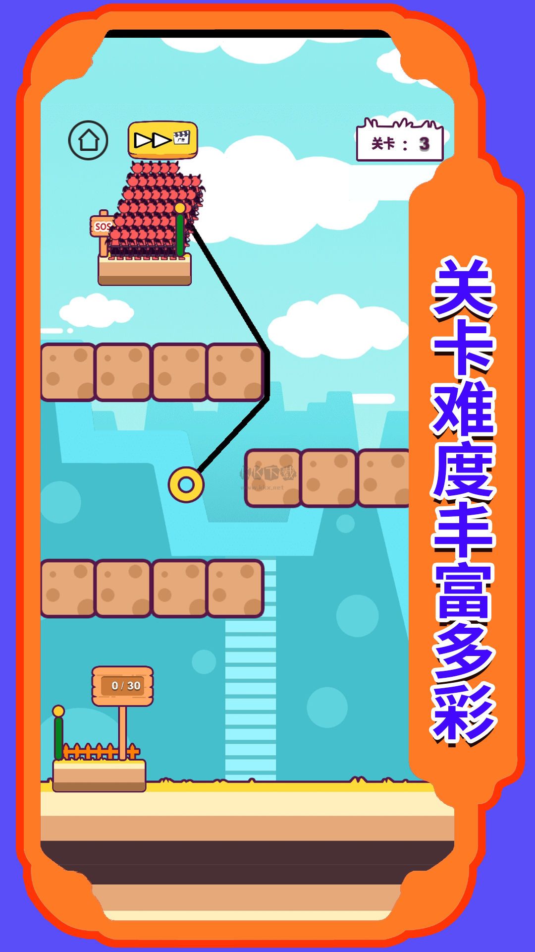 3、繩索操作設計獨特,給玩家?guī)砣碌挠螒蝮w驗,深受好評。