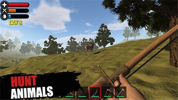 3、你可以通過采集水果、捕魚或者狩獵動物獲取食物,也可以使用火堆和簡單的烹飪技巧制作熟食。
