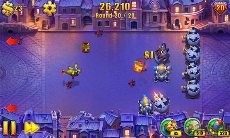 3、多種關(guān)卡模式,高自由度的布陣,豐富的炮塔和道具種類,任玩家發(fā)揮想象力和戰(zhàn)略才能。