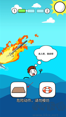 3、選擇正確的道具之后就會(huì)開啟下一個(gè)劇情,選擇板子讓火柴人在板子上漂。