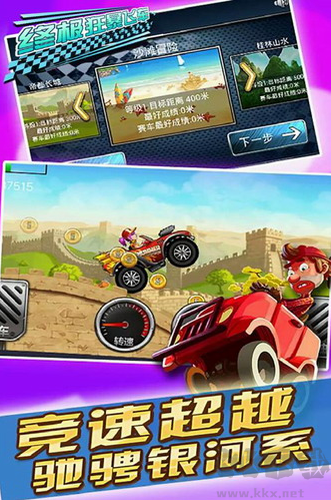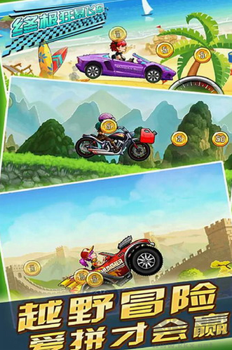 終極狂暴飛車是一款非常好玩有趣的賽車競速闖關(guān)類手機(jī)游戲,游戲采用卡通風(fēng)格打造而成,擁有精美細(xì)膩的游戲畫面,絢麗精致的游戲畫風(fēng)以及精彩多樣化的游戲玩法,帶給玩家極致的游戲體驗(yàn)!在這款游戲中玩家可以在布滿石塊的山地馳騁,也可以在滿地黃金的古墓探索;這里你可以領(lǐng)略祖國山水,快來下載游戲吧!