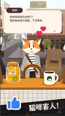 3、這款游戲允許玩家們在離線時繼續(xù)積累資源,貓咪顧客會自動前來餐廳光顧。