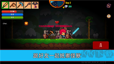 2、收集木頭、各種礦石來(lái)打造各種東西,與其它的玩家一同聯(lián)機(jī)玩,一同合作生存。