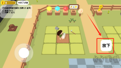 3、點擊屏幕上水桶移動人物到種植的土地上會出現(xiàn)澆水按鈕,為剛播下的種子澆水,等待作物成長