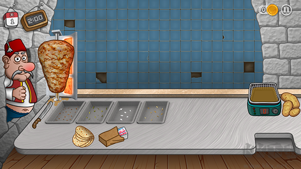 4、在里面將各類食材進(jìn)行準(zhǔn)備,然后將相應(yīng)的沙威瑪制作完成,將制作好的沙威瑪給顧客即可獲得金幣。
