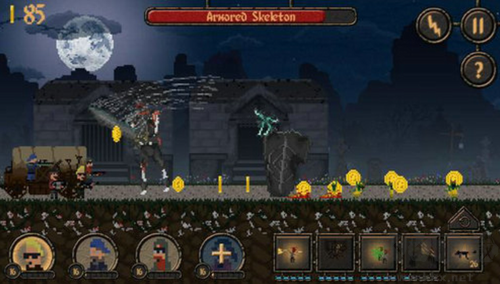 敵人總是從右邊出現(xiàn),角色會(huì)使用普通攻擊進(jìn)行自動(dòng)攻擊,這用于對(duì)付較少的敵人來說已經(jīng)足夠了,但是想要對(duì)付較多的敵人還是的靠技能輸出。