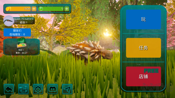 1、通過虛擬按鍵來操控恐龍,自定義的裝扮系統(tǒng)能享受,打造出專屬的恐龍形象。