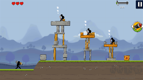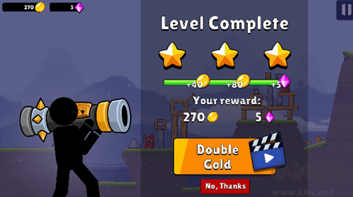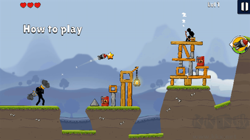 3、點(diǎn)擊屏幕來控制人物的力度進(jìn)行射擊,消滅不同位置的敵人來通過關(guān)卡。