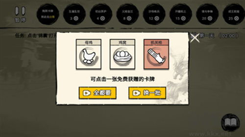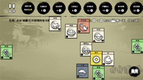游戲內(nèi)玩家們需要通過(guò)各種不同的卡牌羈絆進(jìn)行策略發(fā)展,完成新的挑戰(zhàn)任務(wù)后就可以獲得獨(dú)特的卡牌獎(jiǎng)勵(lì)。玩法方面呢因?yàn)橛星懊鎺卓钣螒蜃鼋榻B,所以這里就簡(jiǎn)單的說(shuō)一下了,游戲內(nèi)我們需要完成任務(wù)或者是售出不用的卡牌,從而獲得金幣,而一定數(shù)量的金幣能夠幫助我們解鎖各種卡包,從而獲得各種稀有的卡牌。而在這些卡牌當(dāng)中有的兩者或者幾者之間是有關(guān)聯(lián)的,堆疊在一起就可以創(chuàng)造出全新的東西,比如說(shuō)把母雞和雞窩放在一起,過(guò)一會(huì)兒就會(huì)產(chǎn)生雞蛋,而把水和樹(shù)苗放在一起就會(huì)產(chǎn)生絲瓜......基本上來(lái)說(shuō)就這些了,不過(guò)有一點(diǎn)要注意的是,局內(nèi)卡牌的數(shù)量是有規(guī)定的,超過(guò)就得強(qiáng)制售出哦。