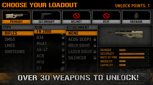 2、超出30種不一樣的武器裝備,盔甲和零配件-包含不一樣品種的小手槍,自動步槍,伎倆,手雷彈,瞄準(zhǔn)鏡和閃亮手雷彈,多種多樣的游戲玩法訂制。