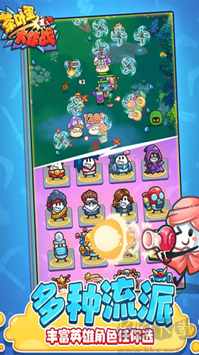 3、來自遠方的茶葉蛋,為了生存,必須在怪物浪潮中展現(xiàn)極限走位,狂熱割草,不斷挑戰(zhàn)BOSS,強化自己,組建一支無敵的英雄小隊!