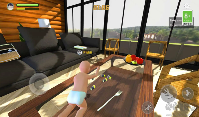 這是一款多人競(jìng)技游戲,規(guī)則并不難:一個(gè)玩家必須扮演父親的角色,而另一個(gè)則是嬰兒。父親的責(zé)任是盡最大努力在規(guī)定時(shí)間內(nèi)保護(hù)孩子,使他不受家里各種危險(xiǎn)物品的傷害。兒子的行為是作惡。