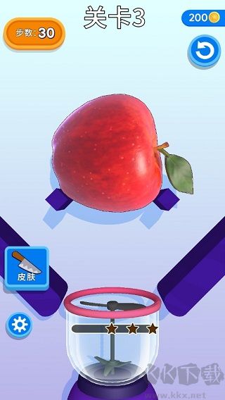 游戲中,玩家需要將飽滿多汁的水果切成碎塊,水果塊沿著關(guān)卡障礙掉入榨汁機(jī),最終榨出一杯美味可口的新鮮果汁。當(dāng)然在切切切的同時(shí)要看好水果掉落的方向,不然水果碎塊無法落入榨汁機(jī),不僅造成浪費(fèi),榨汁目標(biāo)也無法達(dá)成。