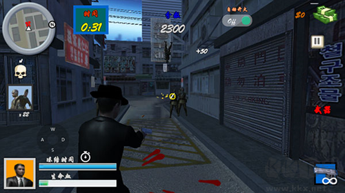 9、伊藤鬼佐,用刀攻擊或扔飛鏢,飛鏢可以打爆:最低350,爆頭500,普通400 注:此人為4-2關(guān)卡的boss。