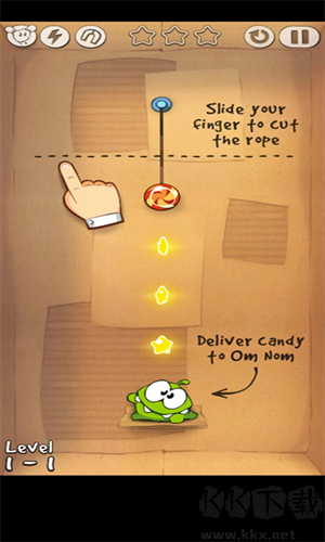 割繩子(Cut the Rope Free)是一款休閑趣味手游,游戲整體采用2D卡通畫面打造,多種色彩渲染下的關(guān)卡非常吸引玩家眼球,同時游戲的操作非常簡單,進入游戲后,玩家只需滑動屏幕割斷繩子讓小吃貨吃到食物即可,你還可以選擇重玩該關(guān)卡,直到取到滿星跑分為止,喜歡的小伙伴快來下載體驗吧!