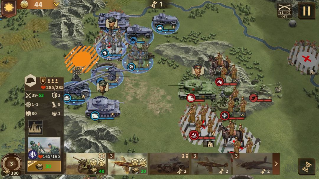 4.多達(dá)200多個(gè)國(guó)家的軍事單位,超過(guò)100位名將和60多種特種部隊(duì),都將加入你的戰(zhàn)場(chǎng)。