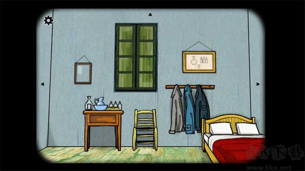 逃離方塊阿爾勒官方版是由Rusty Lake制作組制作的逃離方塊系列游戲的一個番外作品,該作與系列的劇情沒有聯(lián)系,是以梵高的一生為基礎創(chuàng)作的一個解謎逃脫游戲,任何線索都與梵高的畫作及生前息息相關,密室地圖就是梵高的經(jīng)典畫作《梵高在阿爾勒臥室》卡通化版。