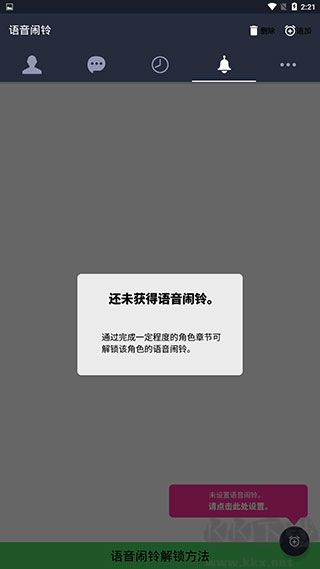 ??????7、語(yǔ)音鬧鈴界面可以設(shè)置對(duì)應(yīng)角色的語(yǔ)音鬧鈴,語(yǔ)音鬧鈴?fù)ㄟ^(guò)完成角色章節(jié)可以解鎖。