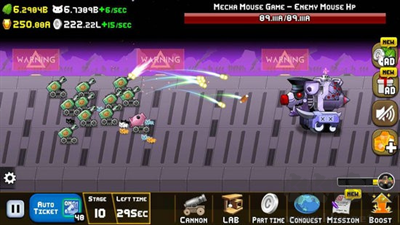 4. 消滅機甲鼠標并獲得大量貓薄荷,通過制造巨型火炮來建立一支更強大的軍隊。