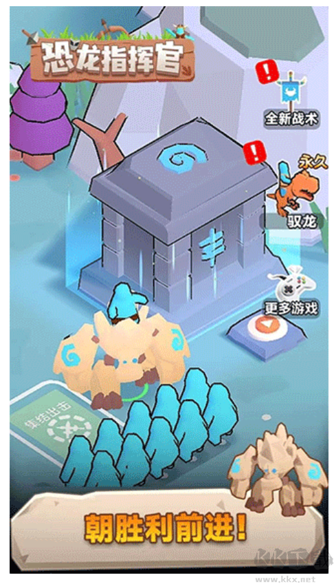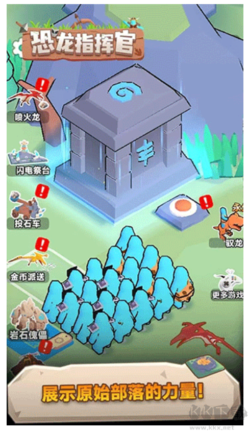 3、放置玩法,操作非常簡單,不需要復(fù)雜的操作,玩家可以利用靈活的頭腦打造出一個強大的恐龍軍隊,并且游戲極大的考驗著玩家的指揮才能和策略思維,這樣才能消滅對手,保護部落。