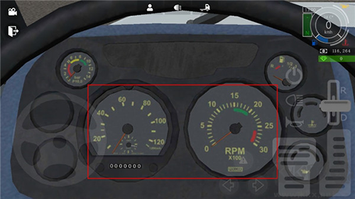 1、系好安全帶,按起止按鈕開(kāi)動(dòng)卡車;在屏幕的右側(cè),將它移到“d”位置。