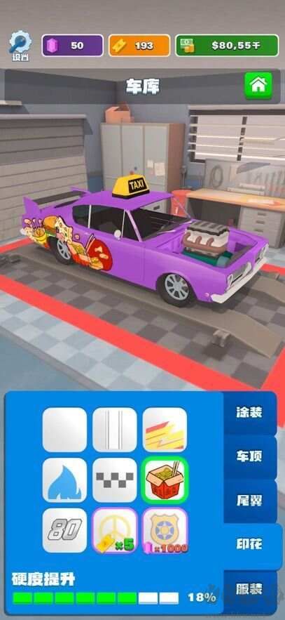1.使用一輛基本汽車開始游戲,通過點(diǎn)擊屏幕賺取游戲內(nèi)貨幣進(jìn)行升級(jí);