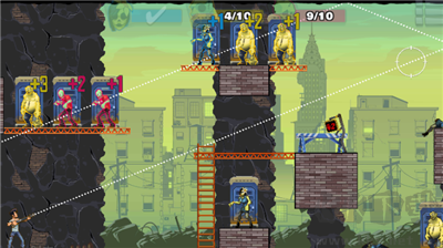 愚蠢僵尸3安卓版是一款橫版射擊游戲,游戲的一大亮點在于其創(chuàng)新的彈射機制,即一顆子彈可能通過墻壁和其他物體的反射造成連鎖反應(yīng),一次性擊敗多個目標(biāo)。隨著關(guān)卡的推進(jìn),游戲難度逐漸增加,會出現(xiàn)更復(fù)雜的環(huán)境因素和更具挑戰(zhàn)性的僵尸種類,感興趣的玩家們歡迎到本站下載試玩。