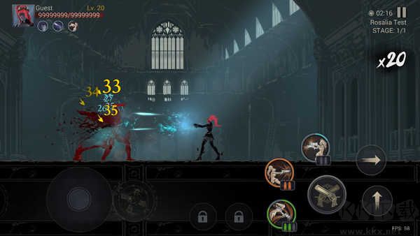 3.選擇好角色后,等待一會(huì)加載,進(jìn)入游戲后如圖,左邊控制移動(dòng),右邊控制攻擊、技能、跳躍等功能;