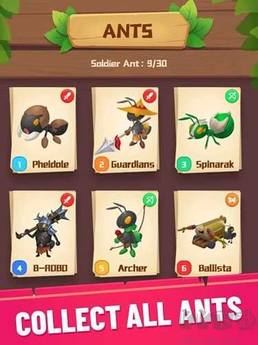5.不同類型的螞蟻選擇,你可以自己來搭配自己的陣容。