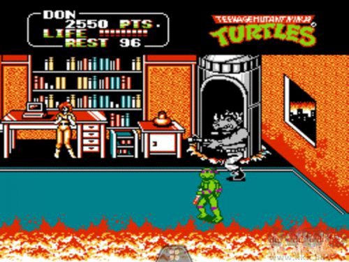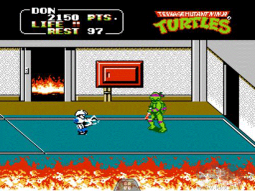 過關(guān)技巧:可以站在boss旁邊然后使用普通攻擊,boss在被攻擊時(shí)不會(huì)攻擊忍者龜,不過要注意躲避boss的子彈,一般失去兩條性命就可以過關(guān)了。