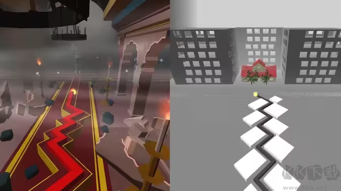 仔細聆聽音樂,指引線條通過:多重地形。點擊屏幕完成轉向,躲避障礙,在多變的地形中到達終點。