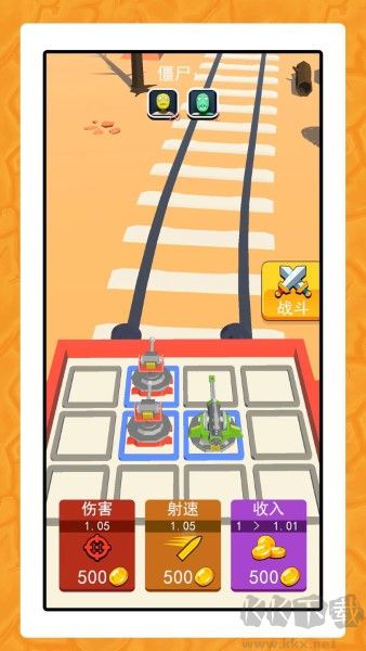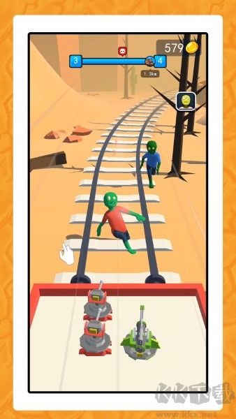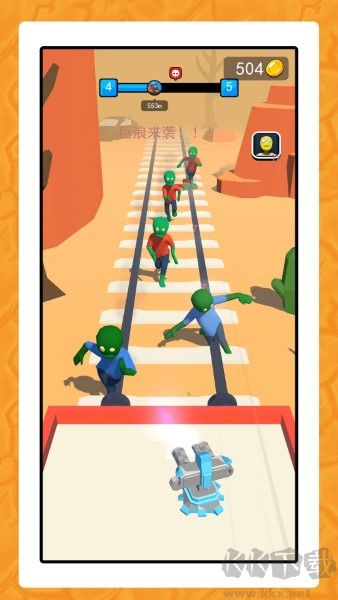 2、鐵軌上面布滿了僵尸,你需要瘋狂的掃射,將它們?nèi)拷o消滅掉。