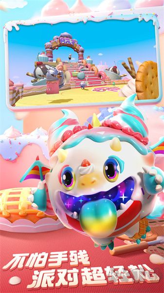 3、游戲上面也說(shuō)過(guò)是一個(gè)Q萌卡通的畫風(fēng),還有搞怪多彩的3D建模場(chǎng)景,畫風(fēng)色彩明艷,紅黃藍(lán)粉.....各種顏色自由搭配。