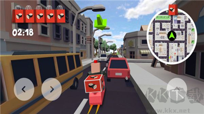 1、玩家可以駕駛小電動車穿梭于車流中,沉浸體驗送外賣的日常任務(wù)。