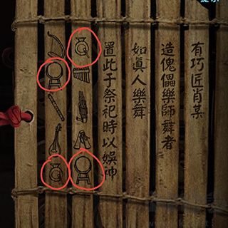 與石盤一一對(duì)應(yīng)即可,石盤上磨損的地方,根據(jù)竹簡(jiǎn)上的線索可以破譯。